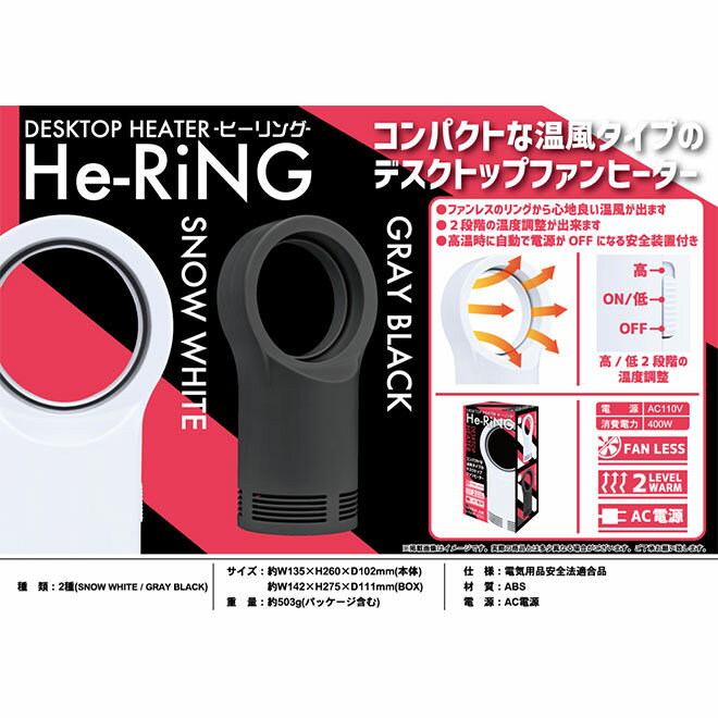 【DESKTOP HEATER He-RiNG -ヒーリング- (羽根無しヒーター)】 コンパクトな温風タイプのデスクトップ ファンヒーター! ファンレスのリングから心地良い温風がでます。