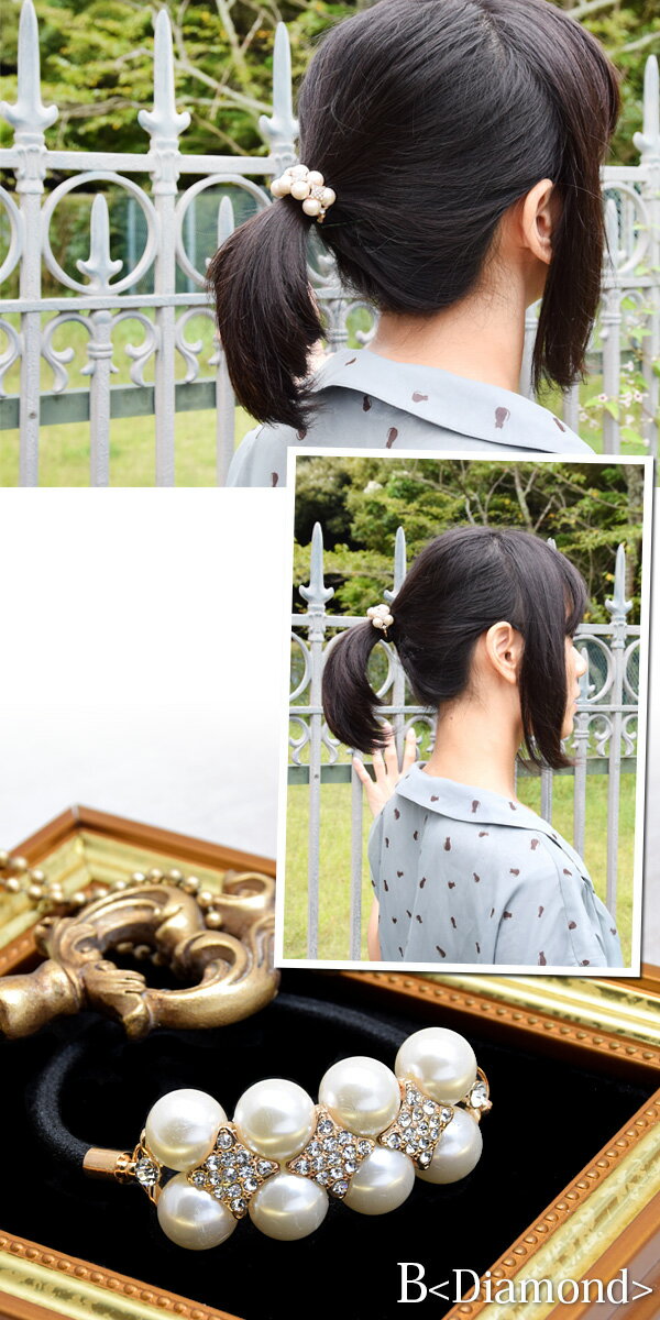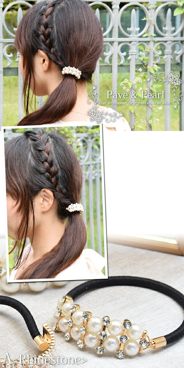 商品名 パヴェ&パールヘアゴム(シンプル) (DPY-480-002) STAFFコメント サッと結ぶだけで上品ヘアアレンジ!キラリと輝くストーンが付いた華やかなヘアゴム。