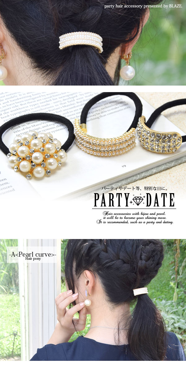【アクセサリービュッフェチケット1000対象】 パール & ビジュー ヘアゴム BLAZE ヘアアクセサリー 結婚式