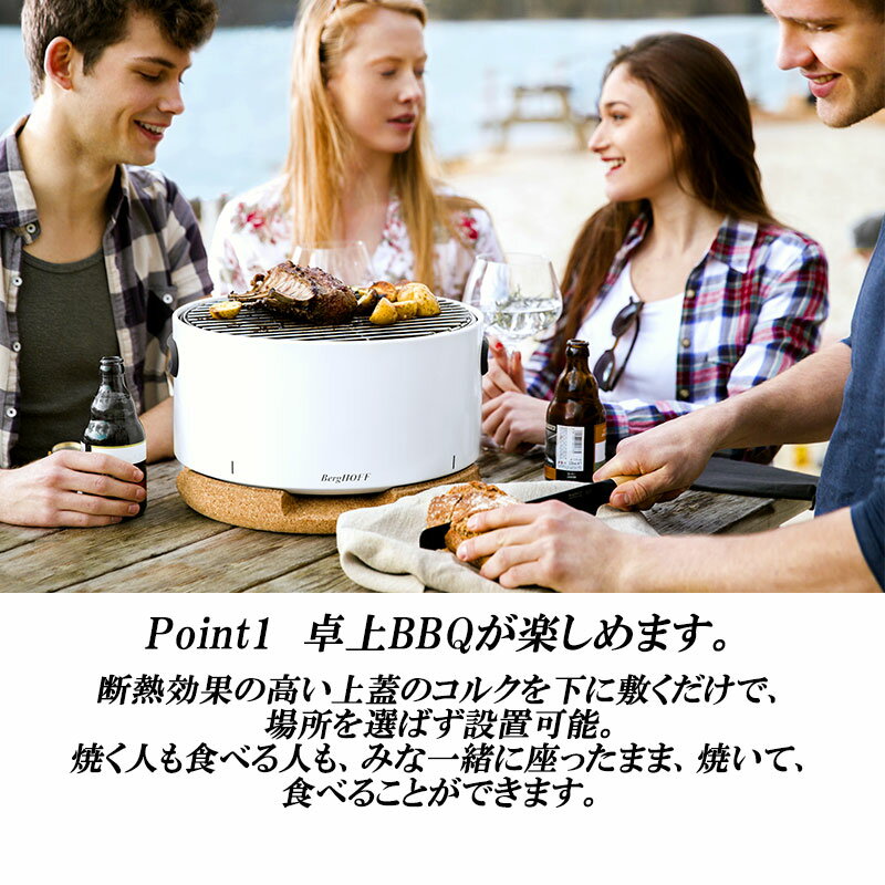 卓上BBQグリル (Table BBQ) 白 バーグホフ (BergHOFF) ベルギー発 コンパクト おしゃれ デザイン性 BBQ アウトドア キャンプに バーベキュー IJ DZ