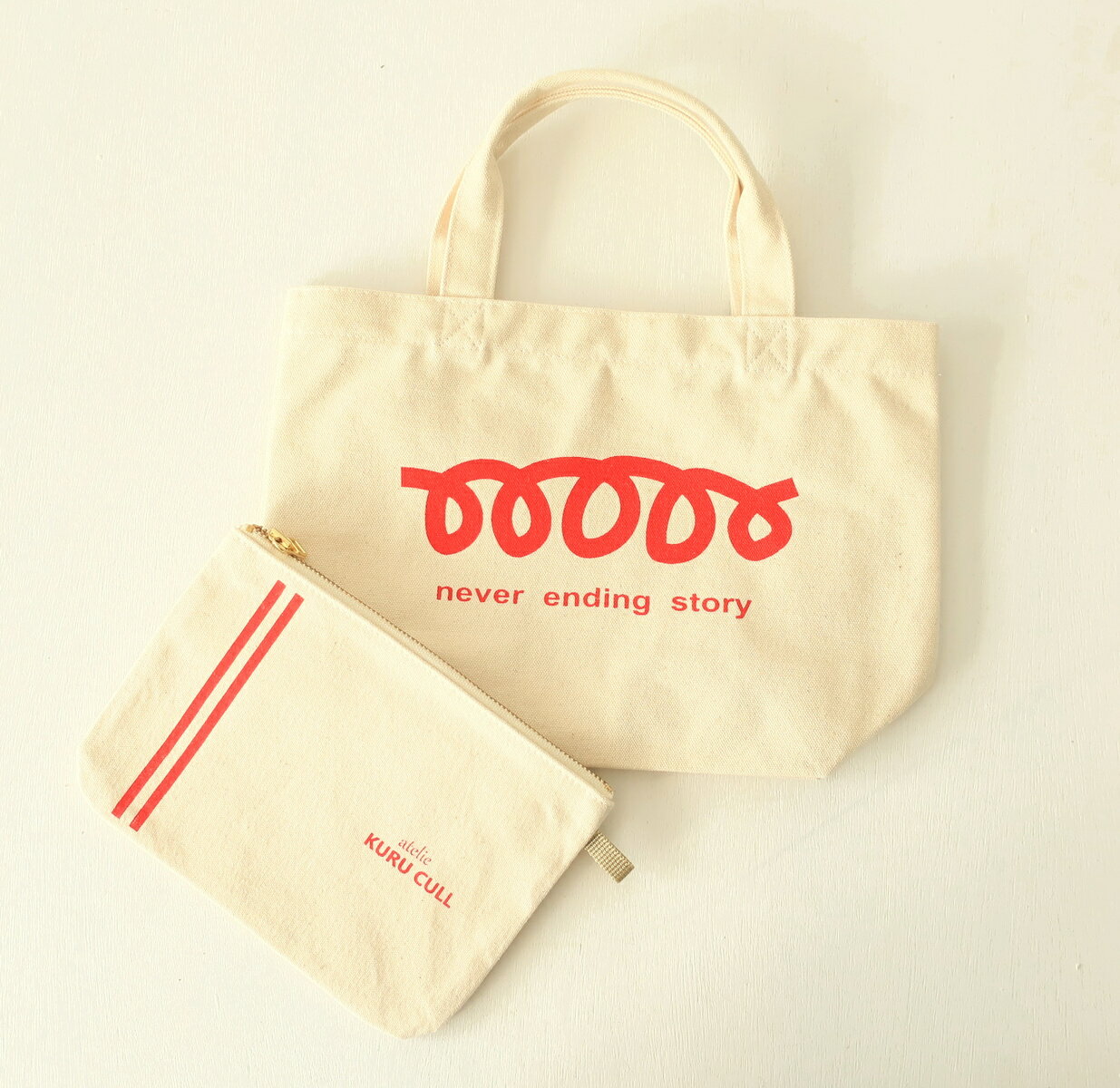 クルクルラインのポーチ付きキャンバスランチバッグ