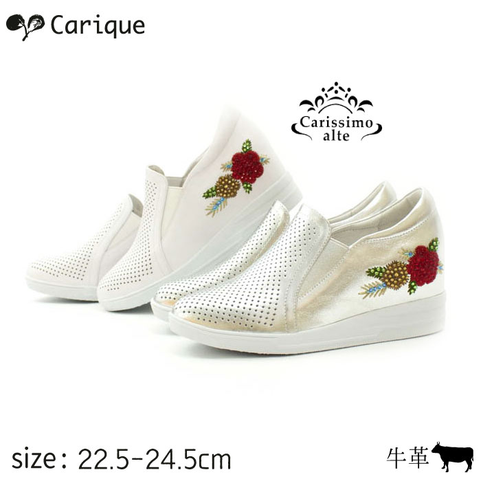 【送料無料】「 Carissimo alte カリシモアルテ 」 スリッポン インヒール レザー レディース 厚底 キラキラ 刺しゅう スニーカー 本革 1699-C532【サイズ交換送料無料サービス♪】