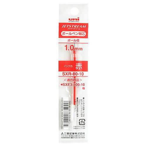 【メール便なら送料290円】【三菱鉛筆】ジェットストリーム ボールペン替芯 1.0赤 SXR-80-10.15